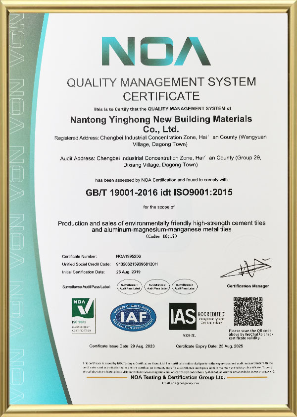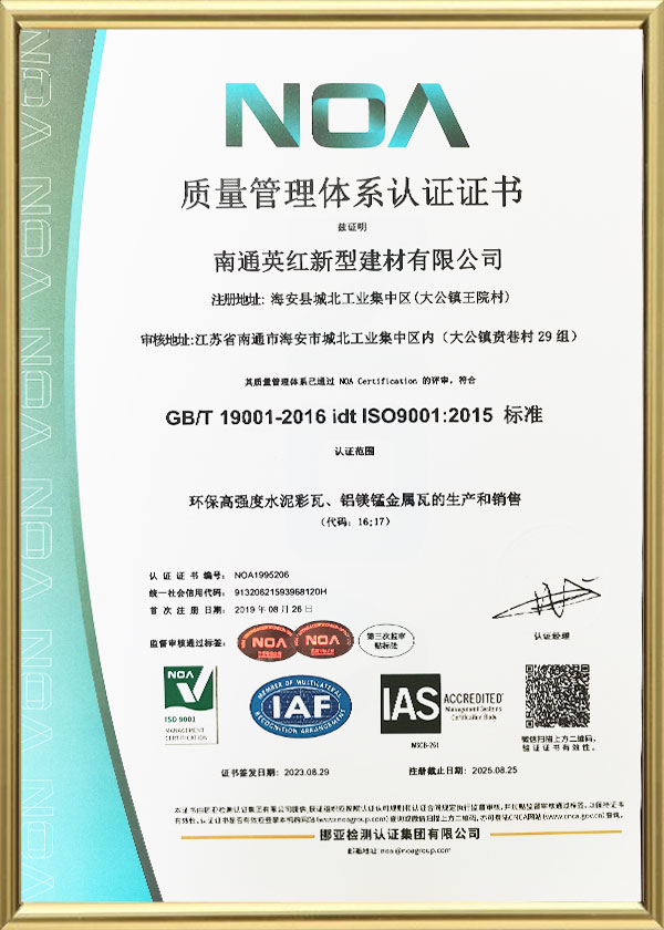 Grundlagt i Nantong, Kina, Meiningjia Roof System Nantong Co., er Ltd. en fremtrædende virksomhed i bygningsdekorationsmaterialet. Specialiseret i forskning, udvikling, produktion og fremstilling af både antikke arkitektoniske komponenter og banebrydende tagsystemer har virksomheden integreret moderne designkoncepter med traditionelle byggematerialer. I årenes løb er Meiningjia blevet førende på hjemmemarkedet og tilbyder tagopløsninger af høj kvalitet lavet af specielle legeringer af aluminium og kobber.